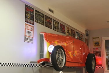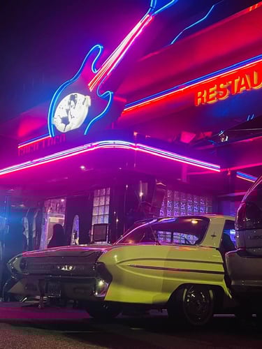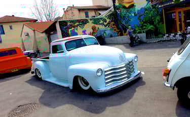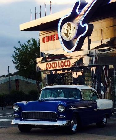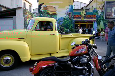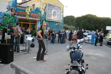 Un décor unique : fresque géante, morceaux de " belles américaines " aux murs et... sur le parking !